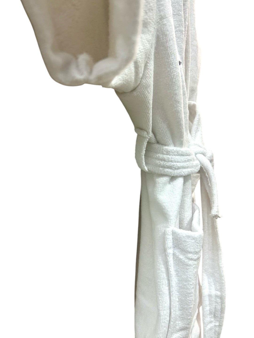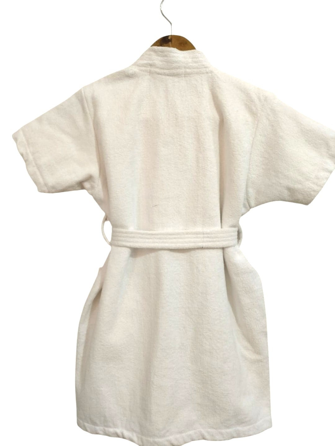 White & Red printed bath robe, has a shawl collar with an open front and short sleeves, with belt loops on either side of the waist & comes with two pockets
