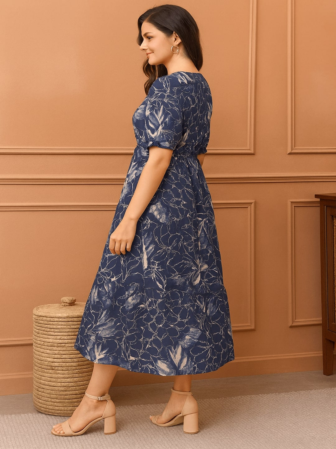 | A chic pure cotton floral A-line midi dress designed for everyday comfort with a touch of elegance. The breathable cotton fabric and flattering silhouette make it ideal for casual outings, travel, and gatherings. The vibrant floral print adds a lively charm, while the tiered design gives it a graceful flow. Pair with heels or flats for a complete look. |