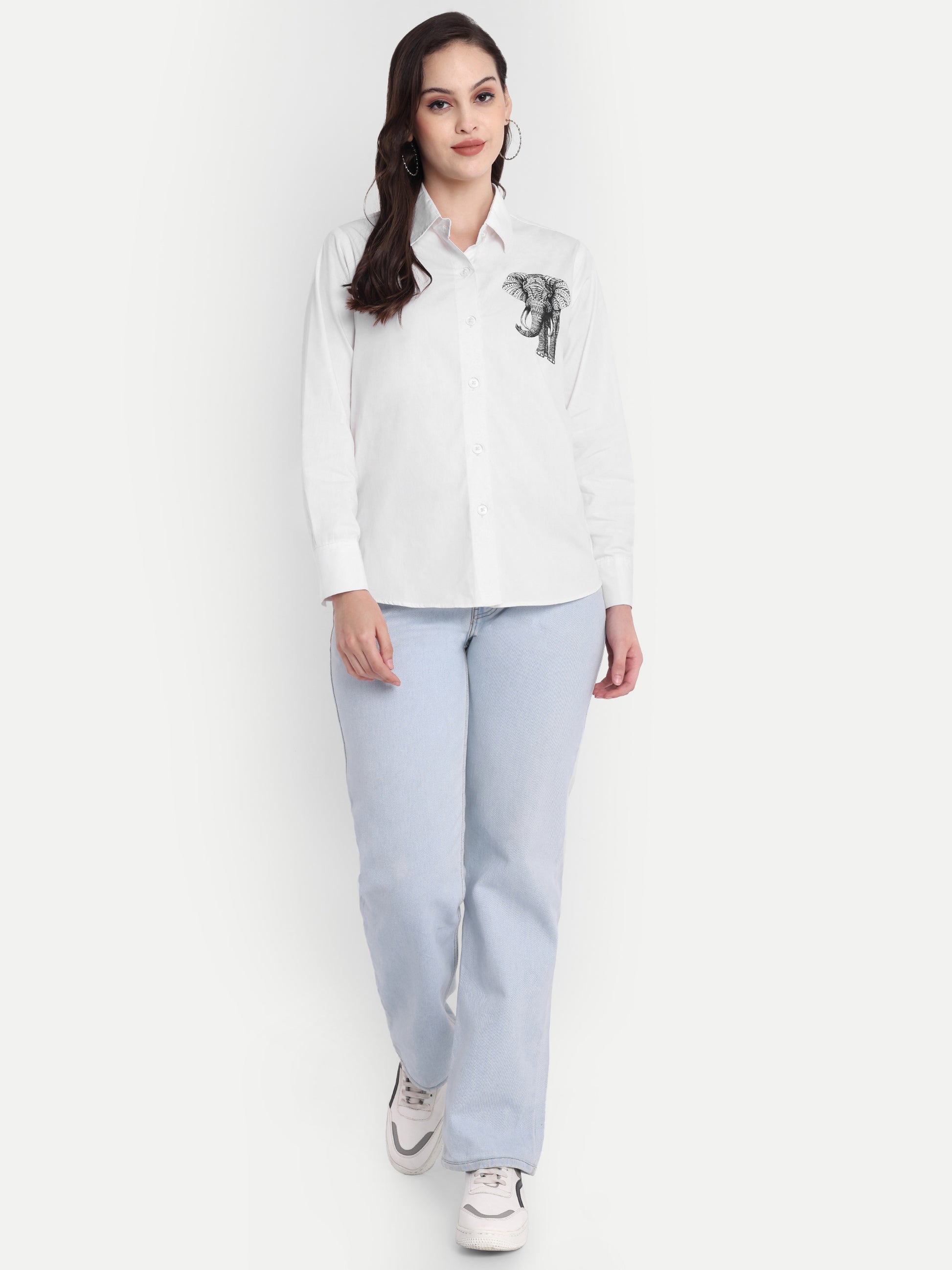 White regular Printed shirt Product DetailsSize & FitBrand Fit: Classic Material & Care100% Cotton Machine Wash SpecificationsSleeve Length